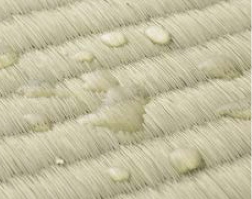 「ここち和座」の畳表には、樹脂コーティング加工がされており、優れた撥水性を持ちます。
